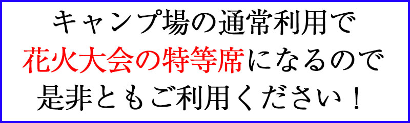 【 開催情報 】 ■10月18日(土) ■18時~21時 ■20時30分~花火大会(打ち上げ花火15分間) ■ZEROのミニライブ、映画祭ゲスト、監督などのトークショーが間近で楽しめます ■劇団駒三郎による舞踊ショー ■BBQ食べ飲み放題 ☞ZERO ☞劇団駒三郎 ☞キャンプ場の予約はこちら キャンプ場も通常営業をいたします。 花火大会を間近で見れる特別なキャンプデイは10/18(土)♪ |