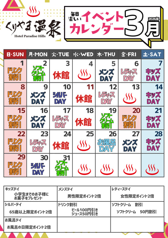 休日 2,000円 ↓ 平日 3,000円 休日 2,000円 |