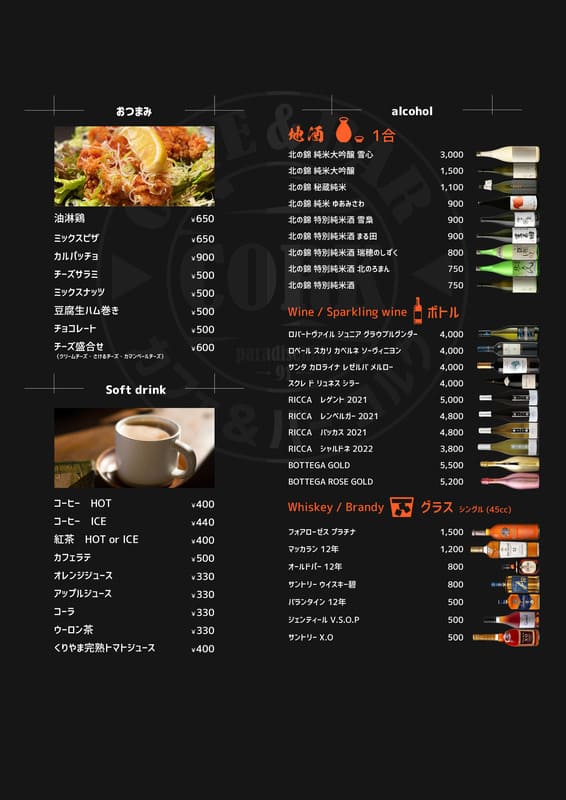 飲み放題2時間制 1,980円 |